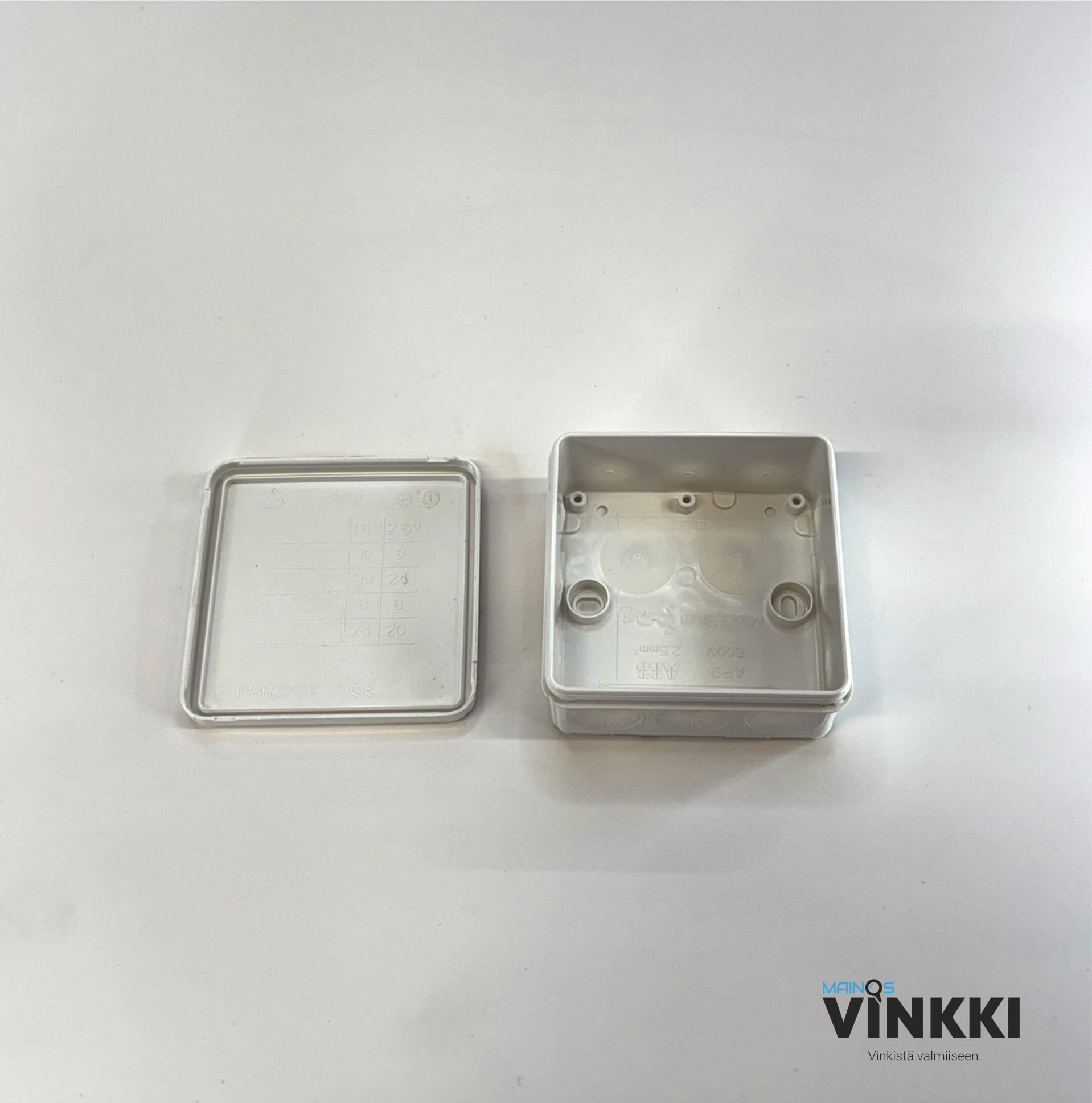 Jäykkä runkoinen jakorasia kiinteillä ja pehmeillä kalvotiivisteillä. Kalvotiivisteitä on 12 kappaletta sivuissa kaapeleille, joiden halkaisija on enintään 17 mm ja kaksi kappaletta pohjassa kaapeleille, joiden halkaisija on enintään 19 mm.